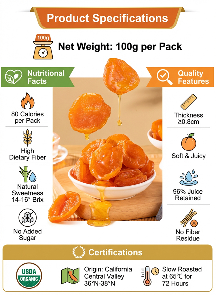 🇺🇸 California Grown: 100% Sourced from Central Valley 🌿 Double Certified: USDA Organic + Non-GMO Project Verified ❤️ Cardiologist Pick: High Potassium for Blood Pressure Support ☁️ Ultra-Soft Texture: 72h Slow-Dried to Retain 96% Juice 🚫 CleanLabel: 0 Sugar | 0 Fat | 0 Preservatives 👴 Senior Friendly: Easy to Chew, Gummy-like Softness